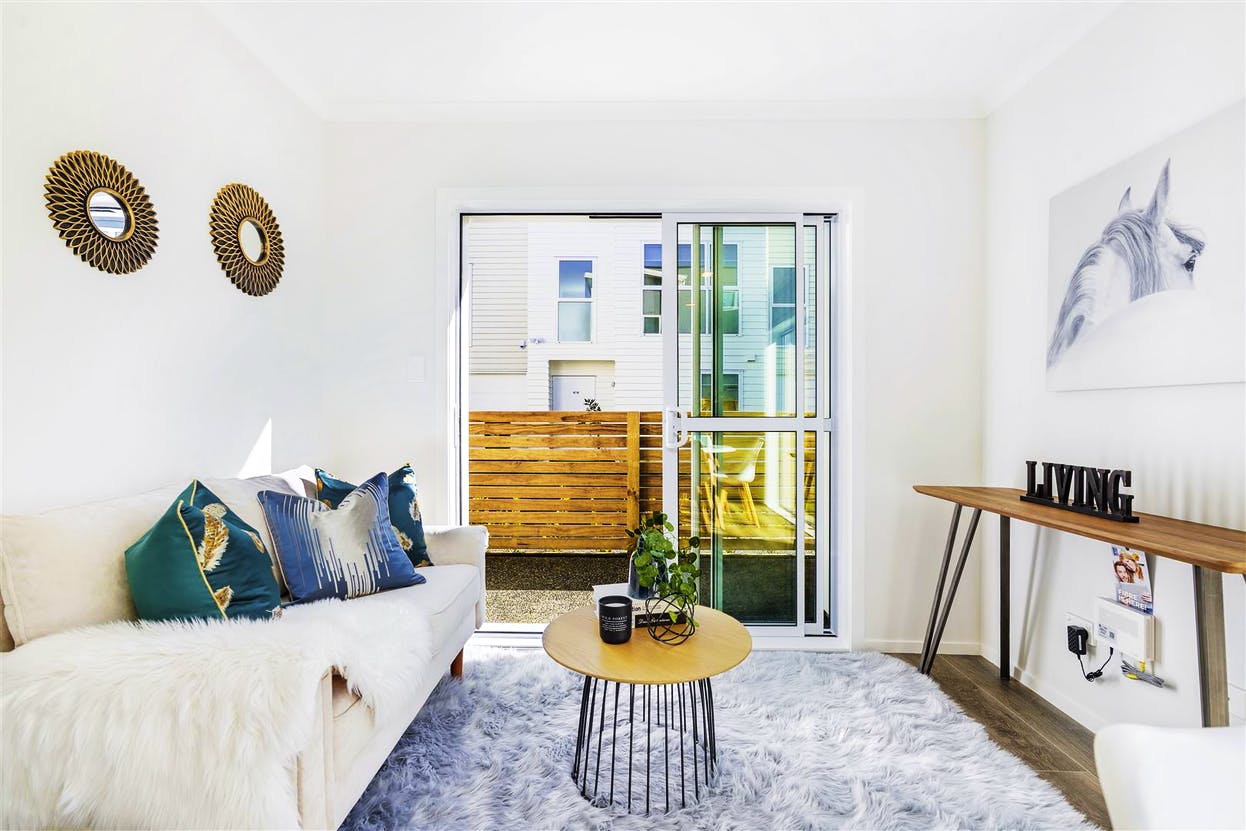 Open plan living with a sheltered balcony